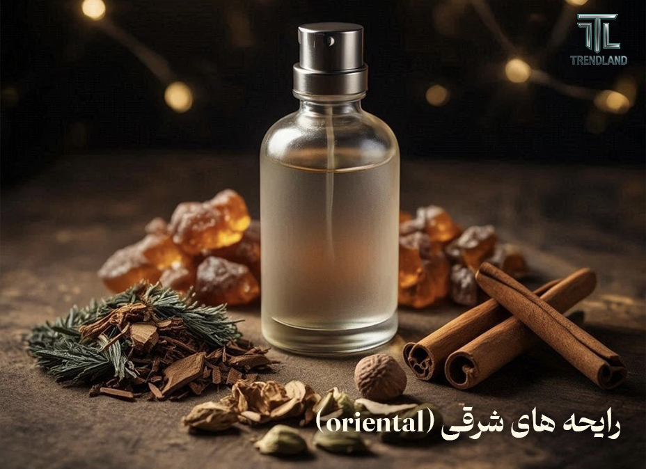 رایحه ی شرقی جزو آن دسته از رایحه های قدیمی است که گستردگی زیادی دارد . عموماً این دسته را با گروه خشکبار و یا سبزیجات هم می شناسند که رایحه های گرم، تند و شیرین دارند. این رایحه ها از موادی همچون بادام زمینی، وانیل، دانه ی توکا، فندق، چوب صندل و… گرفته می شود. رایحه های این دسته عموماً در هر دو نوع عطر مردانه و زنانه دیده می شود.